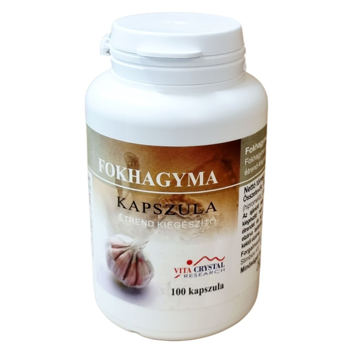 fokhagyma őrlemény, HPMC kapszula (hipromellóz, cink-oxid, sűrítőanyag, emulgeálószer)