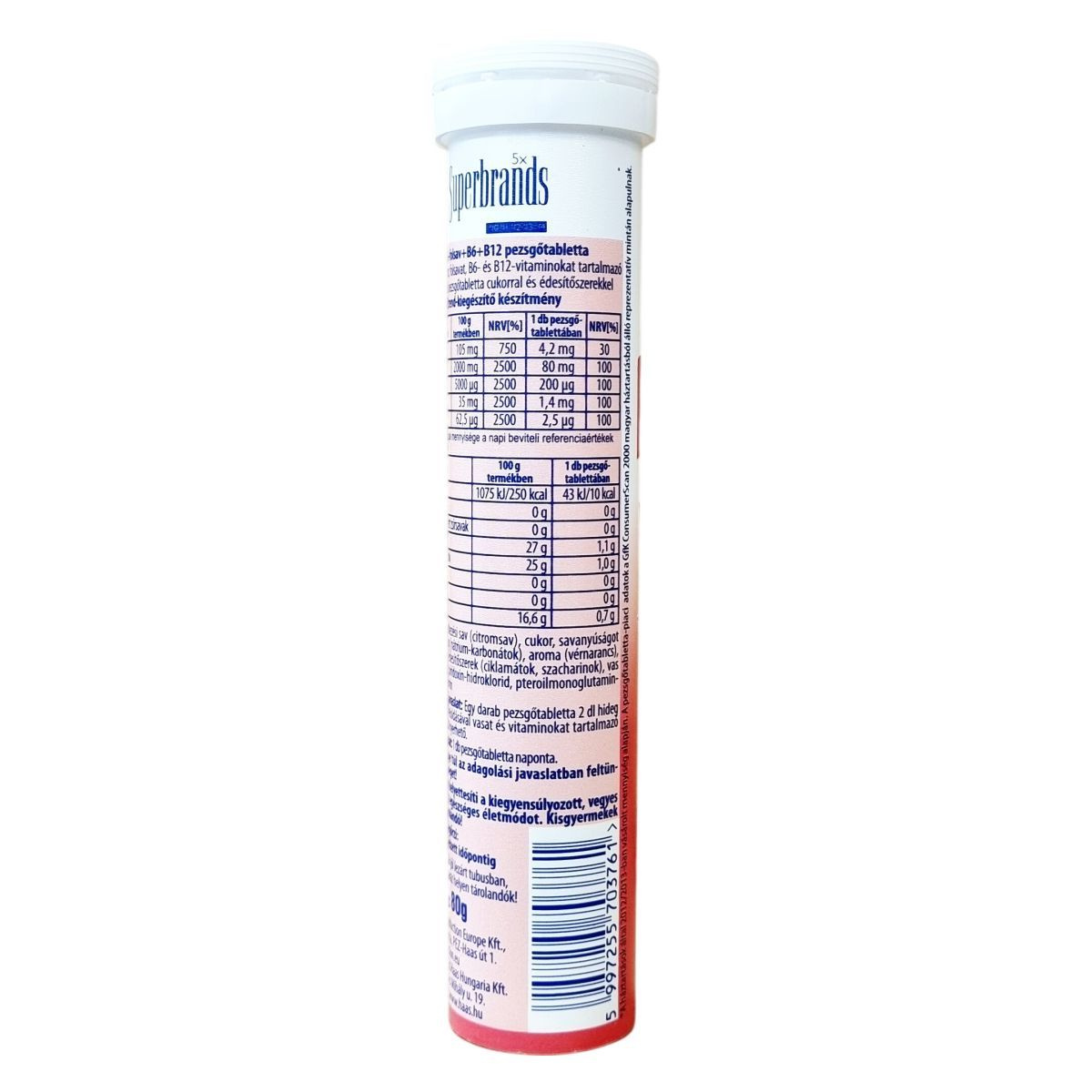 B6-vitamin: 1,4 mg / 1 db pezsgőtabletta