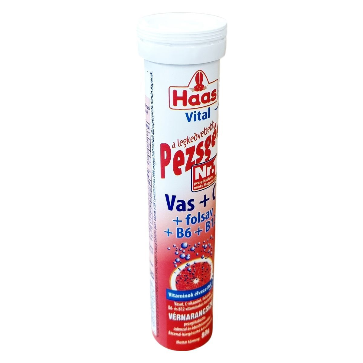 Vérnarancs ízű pezsgőtabletta vas, C-vitamin, folsav, valamint B6- és B12-vitamin tartalommal. A készítmény vízben oldva ital formájában fogyasztható, étrend-kiegészítőként. Nettó tömege 80 g.