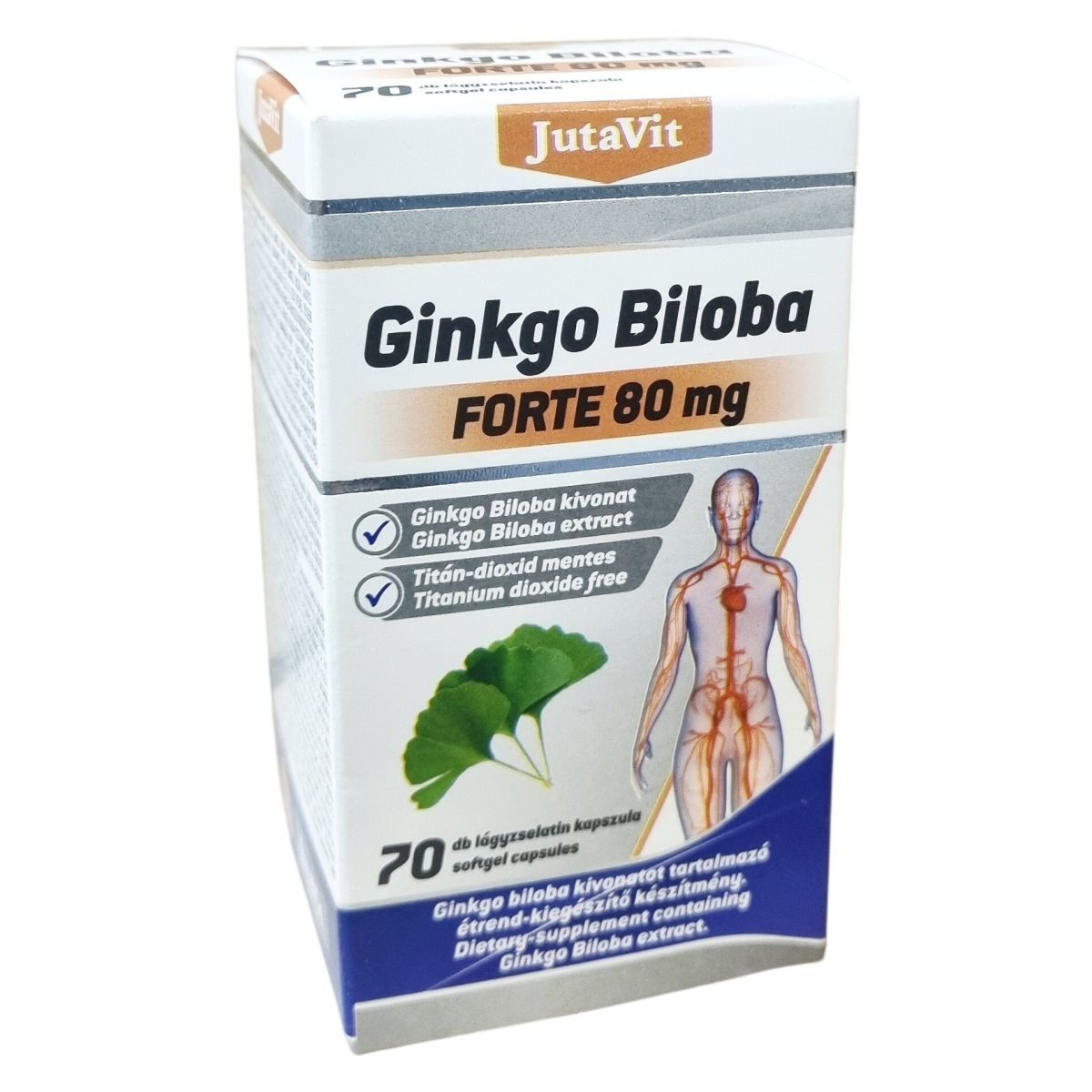 A JutaVit Ginkgo Biloba FORTE 80 mg lágyzselatin kapszula Ginkgo Biloba kivonatot tartalmazó étrend-kiegészítő, amely a páfrányfenyő speciális leveleiről készül. A Ginkgo Biloba az egyik leghosszabb életű fafaj, melynek egyes példányai több mint ezer évesek. A készítmény hozzájárulhat a perifériás keringési rendszer működéséhez, különösen előnyös lehet a hallás és látás fenntartásában. Időskorban támogathatja az agyműködés megfelelő szinten tartását. A termék 70 db lágyzselatin kapszulát tartalmaz, amelyek napraforgóolajat, zselatint és nedvesítőszerként glicerin tartalmaznak, valamint különféle segédanyagokat, mint a kalcium-foszfát, fehér és sárga méhviasz, valamint színezékek (klorofil rézkomplex, vas-oxidok, vas-hidroxidok és kalcium-karbonát). A termék használata nem ajánlott terhesség és szoptatás alatt, illetve véralvadásgátló vagy acetilszalicilsav szedése esetén, valamint műtét előtt. Cukorbetegek esetében orvosi konzultáció szükséges a használat előtt. A kapszulák tárolása szobahőmérsékleten, fénytől védve, és gyermekek elől elzárva javasolt.