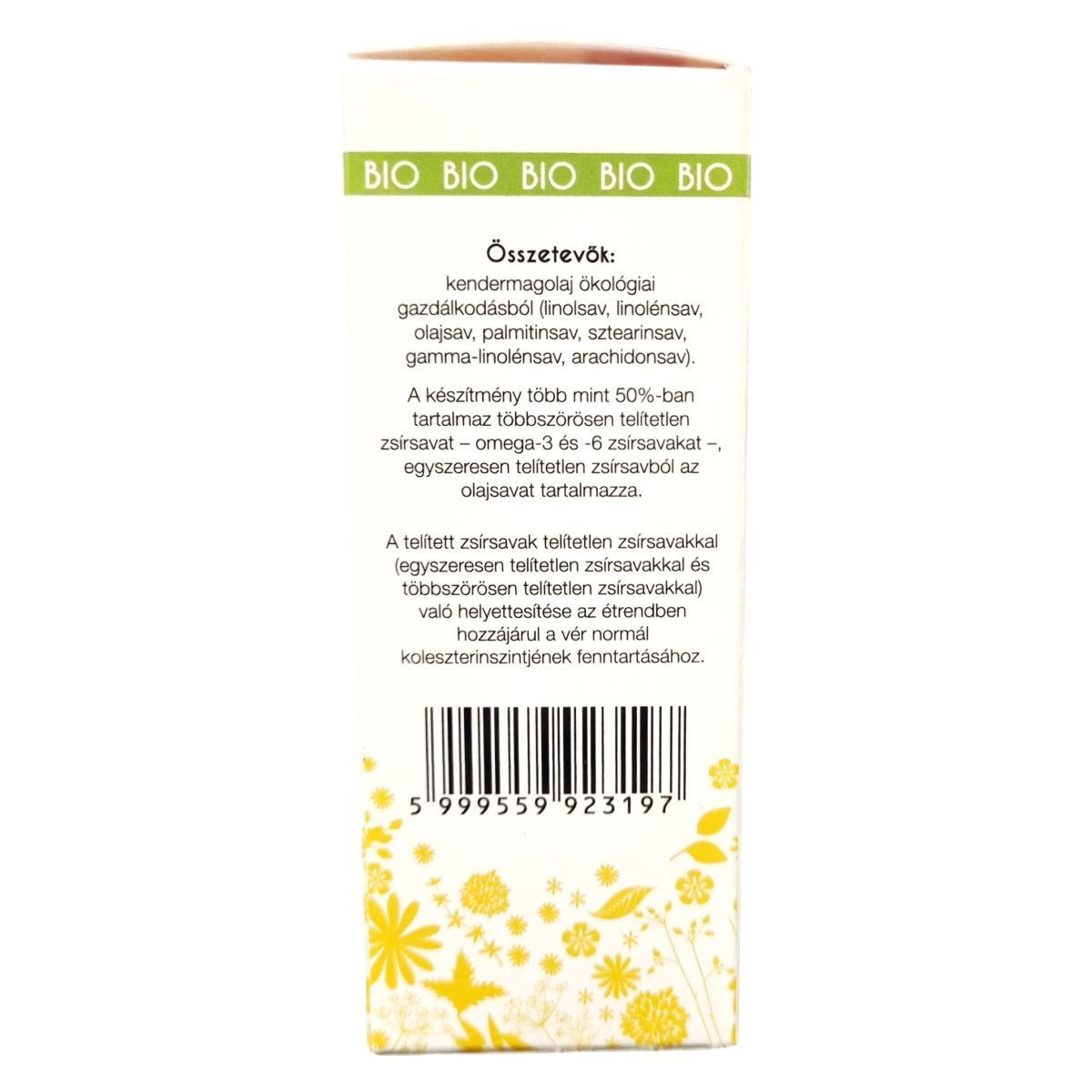 kendermagolaj ökológiai gazdálkodásból (linolsav, linolénsav, olajsav, palmitinsav, sztearinsav, gamma-linolénsav, arachidonsav)