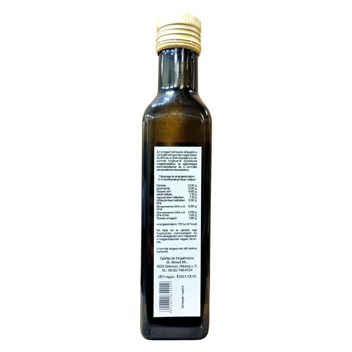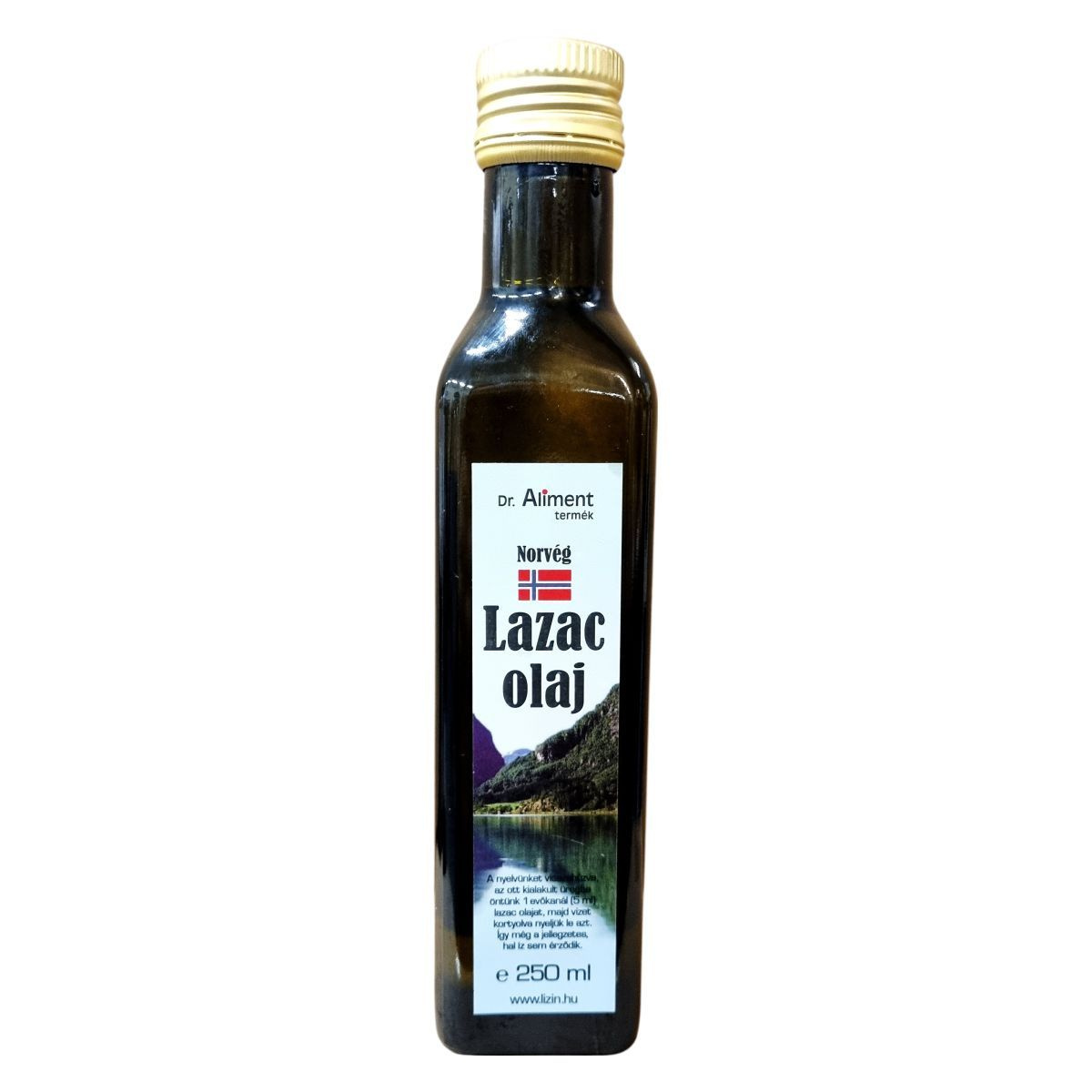 A Dr. Aliment Norvég Lazac olaj termék 250 ml kiszerelésű, folyékony étrend-kiegészítő. Az omega-3 zsírsavak, elsősorban az EPA és DHA, hozzájárulhatnak a vér normál triglicerid szintjének megtartásához, az egészséges szívműködéshez, valamint a normális véralvadás fenntartásához és a vérnyomás megőrzéséhez. A fogyasztás során ajánlott az olajat a nyelvünk visszahúzásával kialakított üregbe önteni, majd vízzel leöblíteni, így csökkentve a jellegzetes halíz érzékelését. Az étrend-kiegészítő nem tartalmaz fehérjét vagy szénhidrátot, kizárólag zsírforrásként szolgál. A termék gyártója és forgalmazója a Dr. Aliment Kft., amely a Debrecenben található. Fontos a napi ajánlott mennyiség betartása, és a kisgyermekek elől való elzárás. A termék kizárólag étrend-kiegészítőként használható, nem helyettesíti a változatos és kiegyensúlyozott étrendet.
