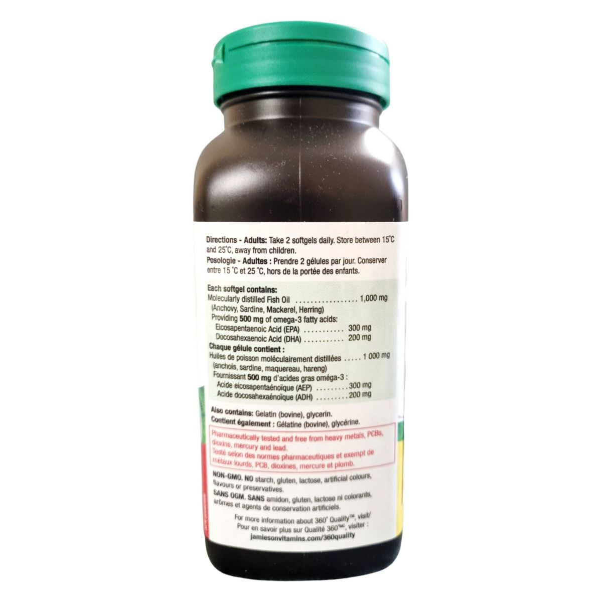 A Jamieson Omega-3 Select kapszula esszenciális zsírsavakat tartalmaz, amelyeket szardellából, szardíniából és makrélából nyernek ki. A termék célja, hogy támogassa a szív egészségét és hozzájáruljon a normál agyműködéshez és látáshoz. A kapszulák molekulárisan desztillált halolajat tartalmaznak, amely mentes a nehézfémektől, PCB-ktől, dioxinoktól, higanytól és ólomtól. A termék nem tartalmaz GMO-t, keményítőt, glutént, laktózt, mesterséges színezékeket, ízesítőket vagy tartósítószereket. A kapszulákat Kanadában gyártják, és a minőségüket a 360° Quality™ program biztosítja.