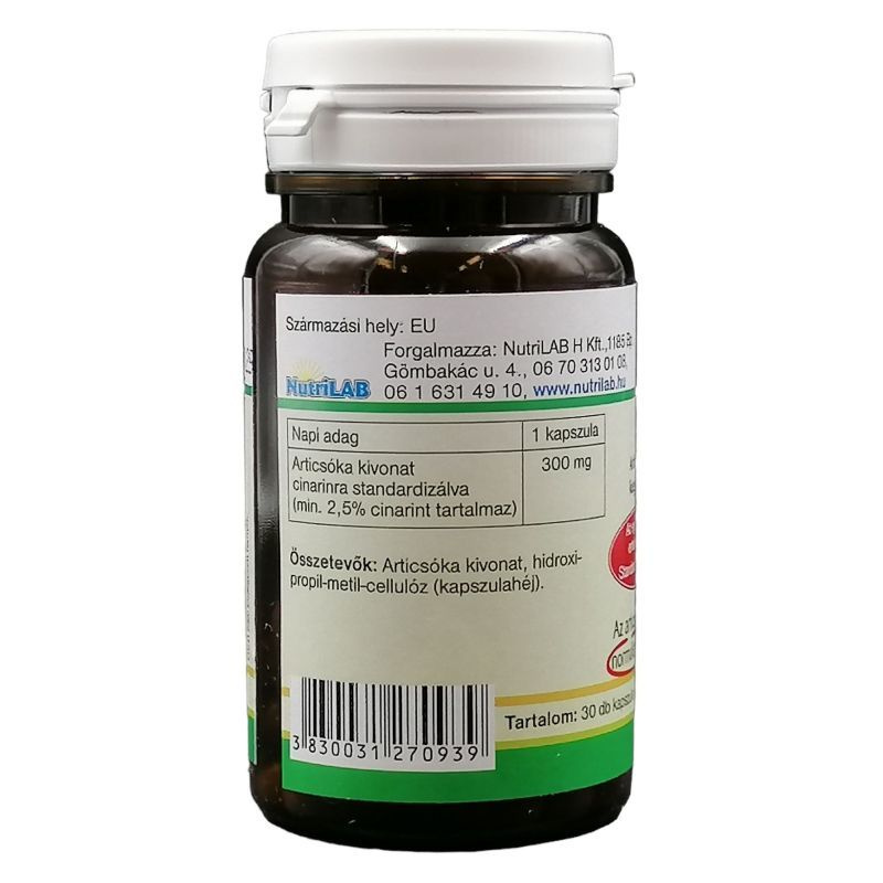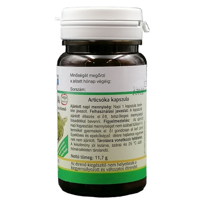 Az articsóka hozzájárul a normális vérzsír szinthez. 2,5% cinarinra standardizált, 30 db kapszula. Napi adag 1 kapszula: articsóka kivonat cinarinra standardizálva (min. 2,5% cinarint tartalmaz). Összetevő: articsóka kivonat, zselatin (kapszulahéj). Kapszula tömege: 390 mg, nettó tömeg: 11,7 g. Ajánlott napi mennyiség: naponta 1 kapszula articsóka kivonat fogyasztása ajánlott.