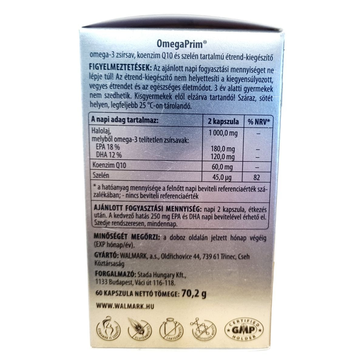 Az OmegaPrim® egy különleges formula, amely minőségi halolajat, koenzim Q10-et és szelént tartalmaz. Az omega-3 zsírsavak, mint az EPA és DHA, hozzájárulhatnak a szív megfelelő működéséhez, a DHA pedig a normál agyműködés és látás fenntartásához. A szelén segíthet a sejtek oxidatív stresszel szembeni védelmében. A termék nagy tisztaságú halolajat tartalmaz, amelyet az ökológiailag tiszta Peru környéki vizekben élő halakból nyernek. A koenzim Q10 az emberi szervezet szinte minden sejtjében megtalálható, és termelése az életkor előrehaladtával csökkenhet. A termék GMP-minősítéssel rendelkező gyárban készült.
