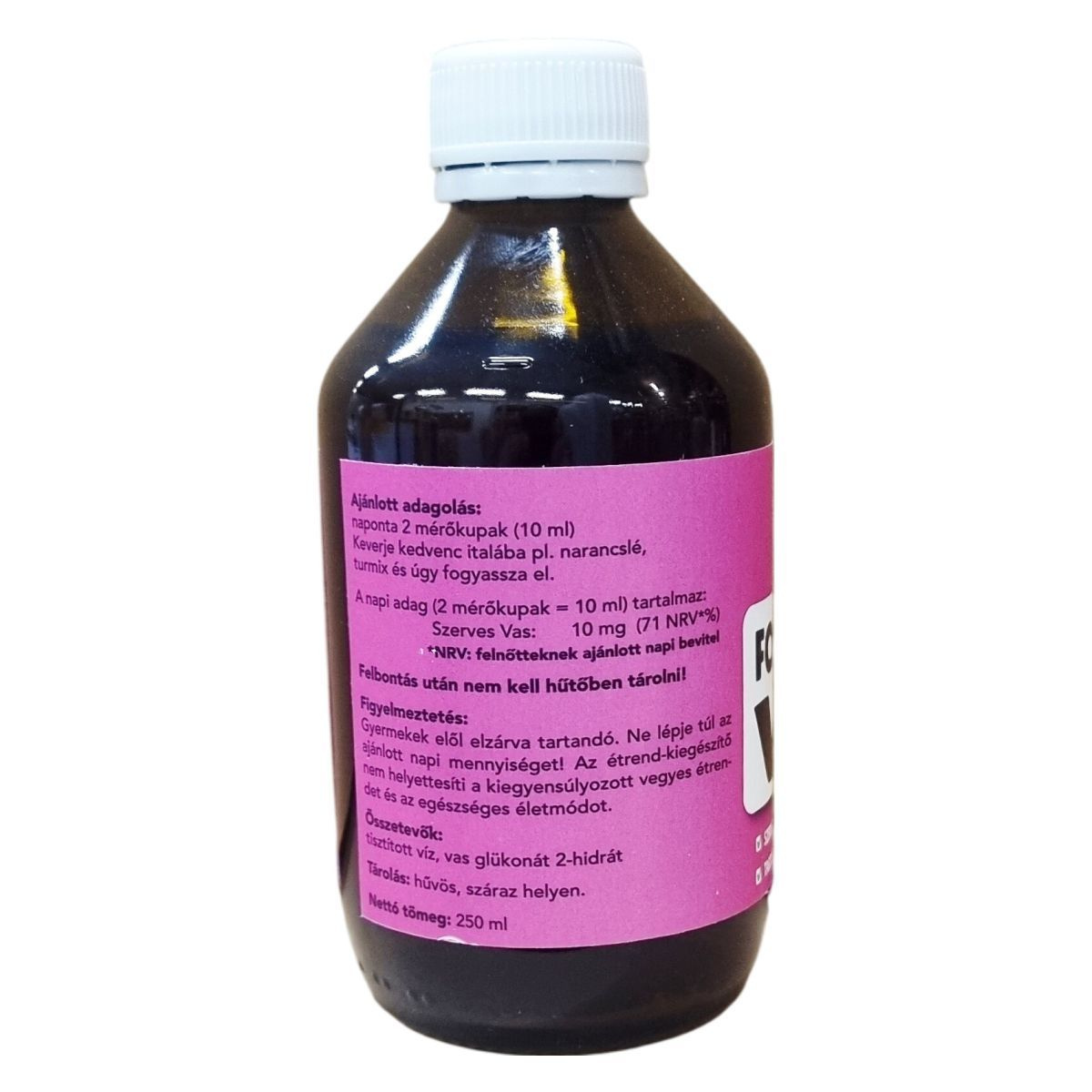 A termék szerves vas tartalmú folyékony étrend-kiegészítő, amely összetételében tartalmaz tisztított vizet és vas glükonát 2-hidrátot. A vas a szervezetben részt vesz a normál vörösvérsejt- és hemoglobin-képződésben, elősegítheti az oxigén szállítását, támogatja az immunrendszer normál működését, a szellemi funkciók fenntartását, valamint hozzájárulhat a fáradtság csökkentéséhez. A termék színezék- és tartósítószer-mentes, vegán étrendhez is alkalmas. Származási helye az Európai Unió.