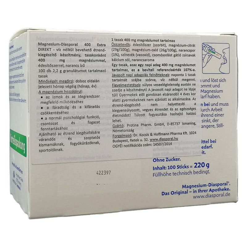 Extra gyümölcsös narancsos ízű, szájba szórható direkt granulátum. Cukor-, glutén- és laktózmentes. Kiszerelés: 20 ill. 50 db direkt granulátumot tartalmazó tasak. Termékismertető: A magnézium hozzájárul: - a normál izomműködéshez, - az idegrendszer megfelelő működéséhez, - a fáradtság és kifáradás csökkentéséhez, - a normál csontozat és fogazat fenntartásához, - a normál pszichológiai funkció fenntartásához.