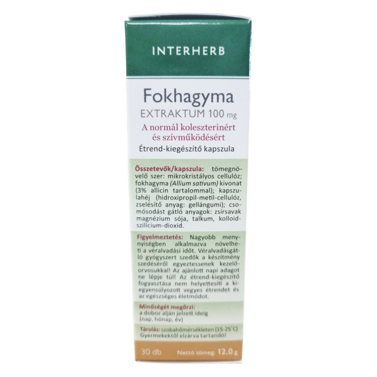 A INTERHERB Fokhagyma EXTRAKTUM 100 mg kapszula a fokhagyma tradicionális előnyeit kínálja, hozzájárulhat a vérlipid- és koleszterinszint szabályozásához, valamint a szív- és érrendszer egészséges működéséhez. A termék szagtalanító eljárással készül, így a fokhagyma kellemetlen utóíze nem érezhető. A bélben oldódó kapszula hatékony felszívódást biztosíthat. A fokhagyma kivonat szerepet játszhat a káros mikroorganizmusok elleni védelemben, és támogathatja az immunrendszer egészséges működését.