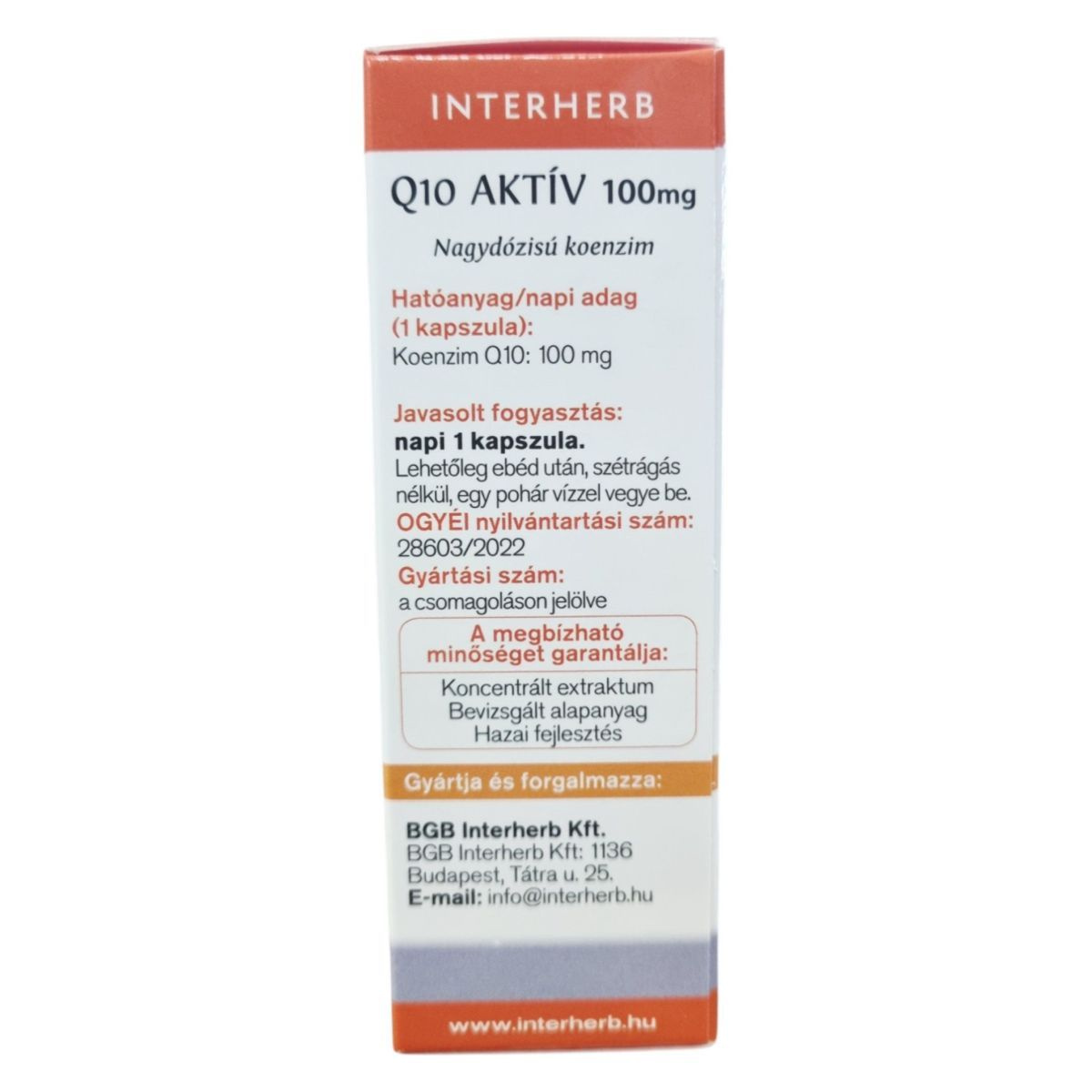 A Q10 AKTÍV 100 mg kapszula egy nagydózisú koenzim Q10-et tartalmazó étrend-kiegészítő, amely segíthet az energiatermelő folyamatok támogatásában. A termék 30 kapszulát tartalmaz, nettó tömege 13,2 g. A koenzim Q10 az enzimekhez kapcsolódó molekula, amely minden sejtünkben jelen van, és az életkor előrehaladtával mennyisége csökkenhet. A termék fogyasztása különösen 40 év felett, fokozott fizikai és szellemi igénybevétel esetén lehet indokolt. A megbízható minőséget a koncentrált extraktum, a bevizsgált alapanyag és a hazai fejlesztés garantálja.
