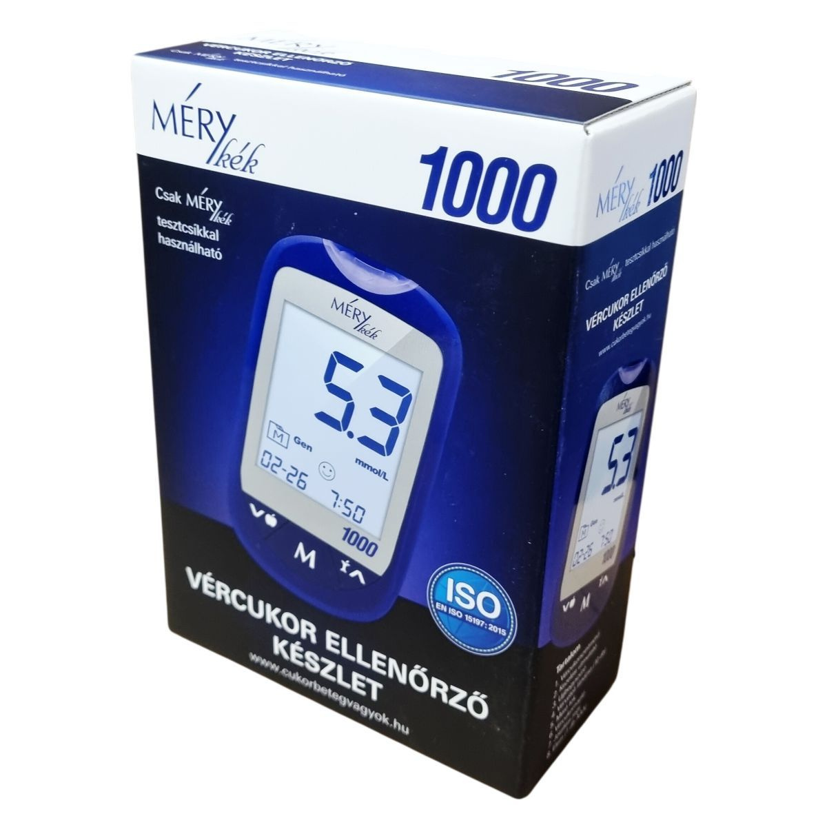 A MÉRY kék vércukor ellenőrző készlet egy komplett csomagot kínál az önálló vércukorszintméréshez. A csomag tartalmazza a vércukorszintmérőt, kezelési útmutatót, ujjbegyszúrót, tíz darab vérvételi lándzsát, mérő tokot, vércukornaplót, jótállási jegyet és egy darab AAA elemet. A készülék 0,5 µL vérmintát igényel, kódolás nélkül működik, és étkezés előtti vagy utáni mérésekhez is alkalmazható, 3 beállítható figyelmeztetéssel. A memória kapacitása 1000 mérés, a reakcióidő 5 másodperc, és ceruzaelemmel (AAA) működik. A mérő hátterében háttérvilágítás, tesztcsík megvilágítás, valamint hangjelzés ki- és bekapcsolási lehetőség is van. A készülék PC csatlakozással és tesztcsík kidobó funkcióval is rendelkezik. A termék kizárólag saját tesztcsíkjaival használható, amelyek garantálják a pontos adatokat. A csomag az önellenőrzést segíti elő, és megfelel az Európai Unió által előírt szabványoknak, valamint CE tanúsítvánnyal rendelkezik. Az eszköz megbízható anyagokból készült, és egyszerű használatot kínál a diabétesz kezelésében érintettek számára.