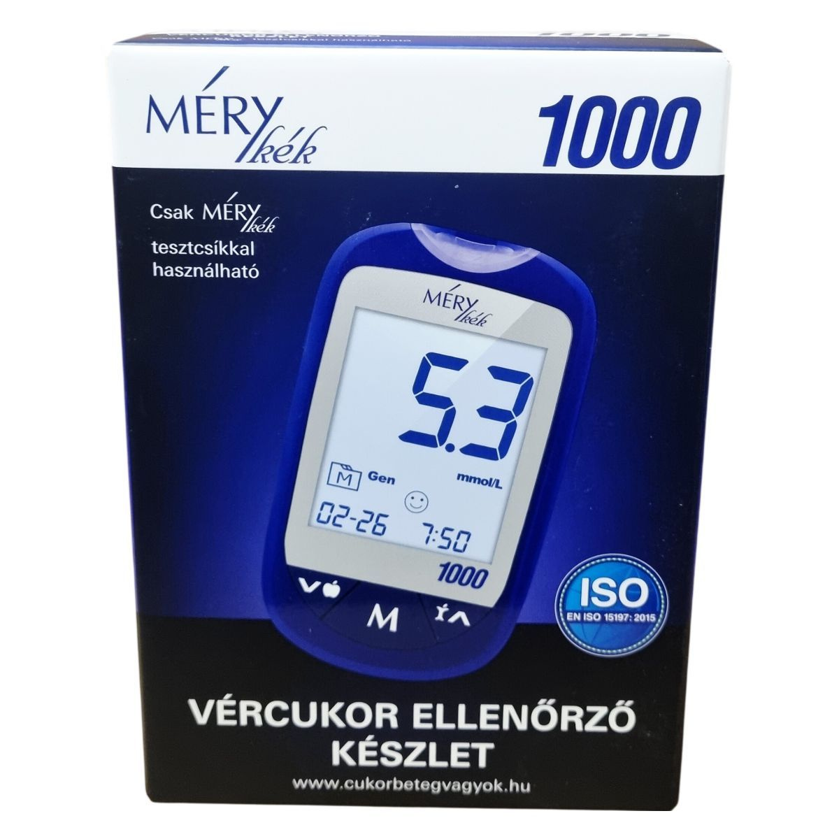 A készülék csak MÉRY kék tesztcsíkkal használható. Tartsa be a használati útmutatóban foglaltakat, és figyeljen az étkezés előtti vagy utáni mérés időzítésére. A készülék nem igényel kódolást, de használat előtt olvassa el a kezelési útmutatót.