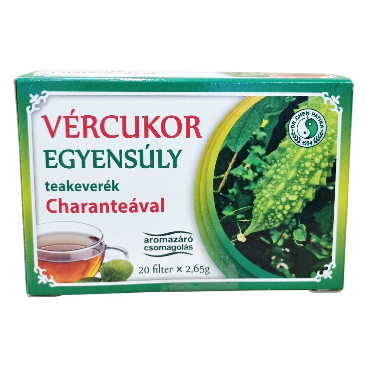 A vércukor egyensúly teakeverék hatékonyan egyesíti a balzsamkörte (Momordica charantia), gyermekláncfű, fahéj, édesgyökér és gyömbér természetes előnyeit. A fahéj, a gyömbér és a gyermekláncfű támogatják a normál vércukorszint fenntartását. A termék több mint 30 éve fogyasztók bizalmát élvezi a Dr. Chen Patika minőségi gyártási gyakorlatával, amely biztosítja a megbízható és ellenőrzött termék előállítását. A teakeverék 20 darab filterből áll, melyek aromazáró csomagolásban vannak, így megőrzik frissességüket és hatóanyagaikat.