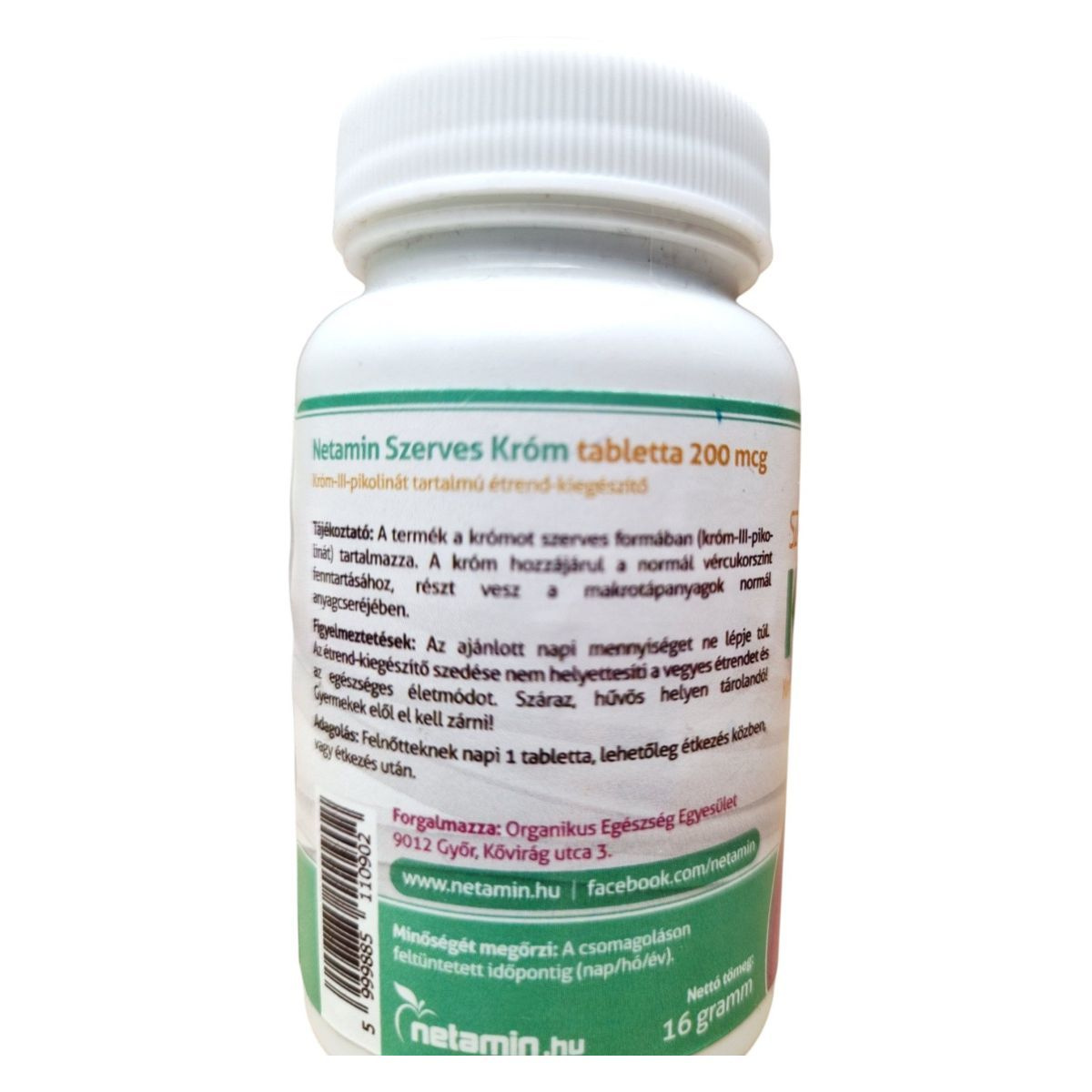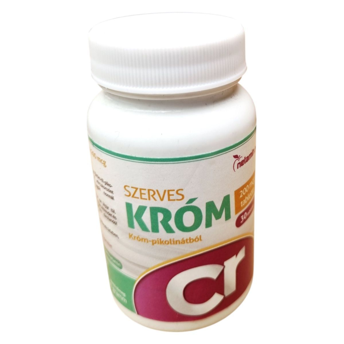 A Netamin Szerves Króm tabletta egy króm-III-pikolinát tartalmú étrend-kiegészítő, amely 200 mcg krómot tartalmaz tablettánként. A termék hozzájárulhat a normál vércukorszint fenntartásához és a makrotápanyagok normál anyagcseréjéhez. A tégely 100%-ban újrafelhasznált műanyagból készült, így környezetbarát választás lehet. A termék bio étrendi irányzatba illeszkedik, és a származási helye az USA. A Netamin Szerves Króm tabletta forgalmazója az Organikus Egészség Egyesület, amely Győrben található.