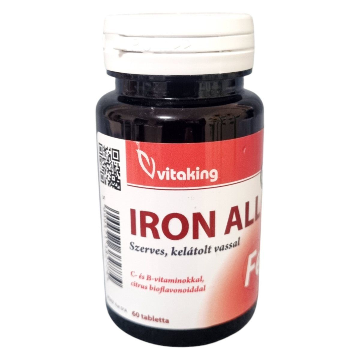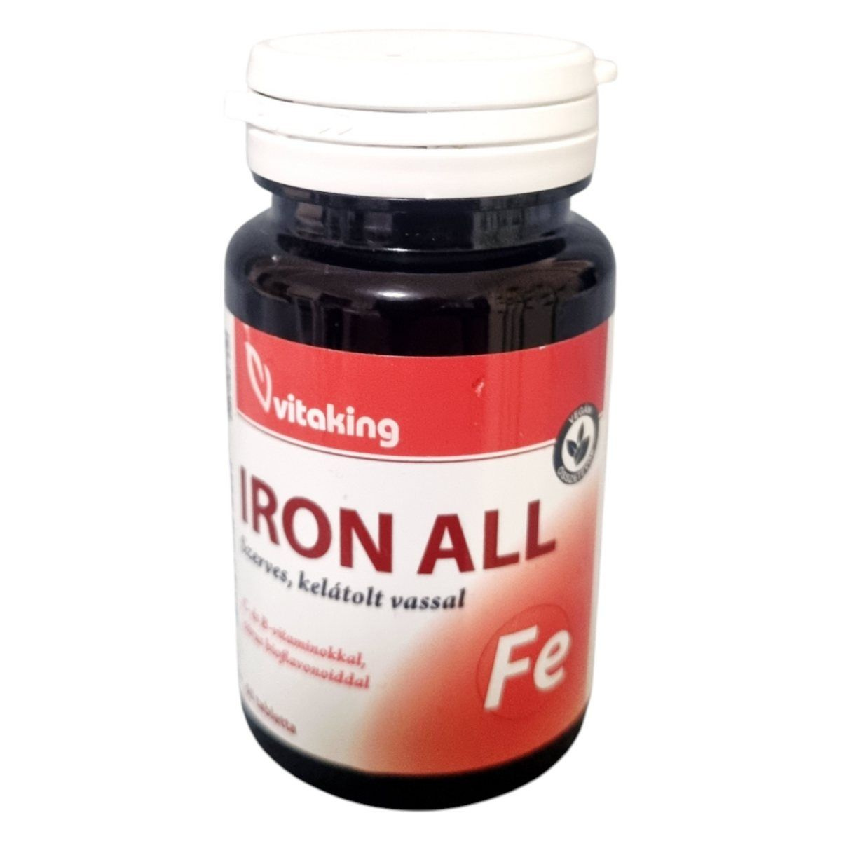 A Vitaking Iron All tabletta komplex étrend-kiegészítő, amely szerves, kelátolt vasat tartalmaz a jobb hasznosulás érdekében. A készítmény C-vitaminnal és citrus bioflavonoidokkal kiegészítve segítheti a vas felszívódását, míg a B6- és B12-vitamin hozzájárulhat a normál energiatermelő anyagcsere-folyamatokhoz, a vörösvérsejt-képződéshez és az idegrendszer megfelelő működéséhez. A termék alkalmazása különösen azok számára lehet hasznos, akik fokozott vasbevitelre szorulnak, például vérveszteség, vegetáriánus étrend vagy egyéb okok miatt. A tabletta gondosan összeállított összetevői révén komplex támogatást nyújthat a szervezet számára.