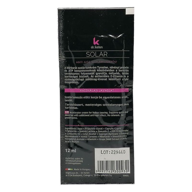 Kettős hatású készítmény, amely a szoláriumozáskor elérhető látványos, dekoratív barnaság fokozása mellett hatékonyan gátolja a bőr öregedését. A multi-active E-vitamin szabadgyökfogó hatása megelőzi a sejtek károsodását, a bőröregedés gátló szőlőmag-kivonat és ATP pedig segíti a hámszövet regenerálódását, megújulását. Arcra, testre egyaránt használható. Gyorsan beszívódik.