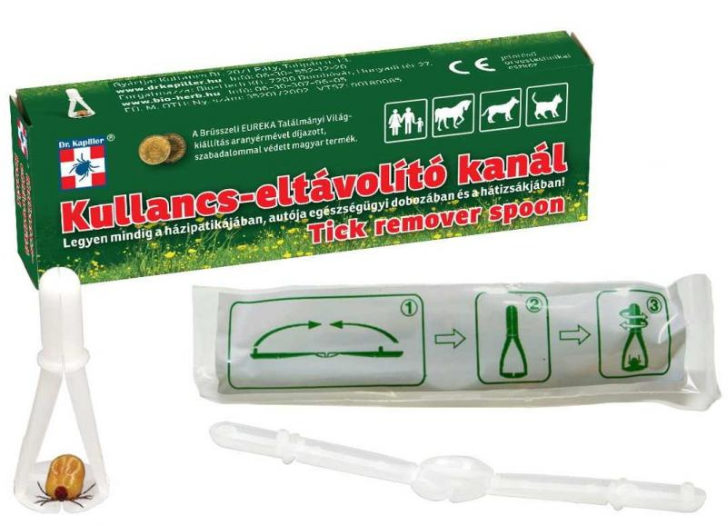 Miért lényeges az, hogy a kullancsot gyötrés nélkül távolítsuk el? Ha a kullancsot bármilyen fizikai- (pl.: nyomás, szorítás stb.) vagy kémiai (pl.: kenőcs, olaj stb.) hatás éri, akkor gyötrődése, fuldoklása, vagy haláltusája okán kórokozókat köphet, öklendezhet a bőrben lévő szúrcsatornájába, így okozva fertőződést. Azonban, ha a kullancs eltávolítás úgy történik, hogy nem gyötörjük, akkor mindez nem történik meg. Mi az előnye annak, ha a kullancs nem üríti testváladékait az általa szúrt sebbe? A kullancsban számos, veszélyes mikroorganizmus (protozoon, baktérium és vírus) él. Amennyiben ezek a kórokozók átjutnak a kullancs szervezetéből a csípett egyénbe, vagy kedvenc állatba, akkor az fertőződik. Mire alkalmas a kullancs-eltávolító kanál? Az eszközzel ember- és kedvenc állat bőréből távolítható el a kifejlett, vérrel szívott kullancs.