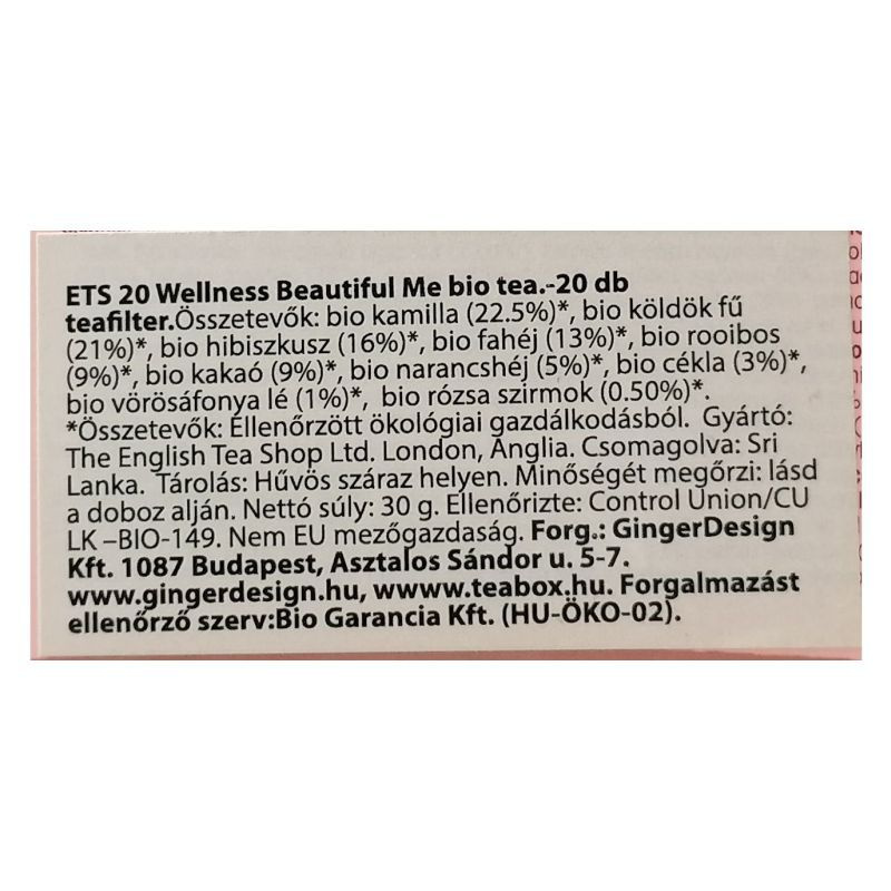 Ets 20 wellness beautiful me bio tea - 20 db teafilter.