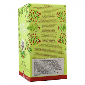 Összetevők: édesgyökér, fehér tea* (59%) citromfű* (21%) borsmenta* (7%) hibiszkusz* (7%) természetes ízesítés (5%) mangó darabok* (0,5%) graviola gyümölcsdarabok* (0,5%). *= ellenőrzött ökológiai gazdálkodásból. Csomagolva: Sri Lanka. Tárolás: hűvös száraz helyen. Minőségét megőrzi: lásd a doboz alján. Nettó súly: 40 g.