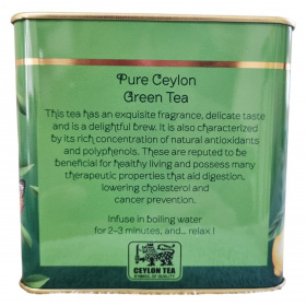 A prémium ceyloni zöld tea kellemes illatú, finom ízű és frissítő ital. Természetes antioxidáns- és polifenol-tartalma miatt kedvelt választás mindennapi fogyasztáshoz, akár melegen, akár jeges teaként elkészítve.