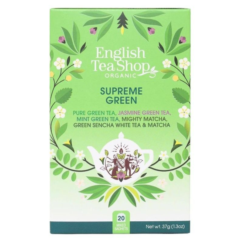 Supreme green. Legnemesebb zöld bio válogatás teák (5 féle íz) Natúr ceylon tea és és más teakeverékek, különböző eredetű összetevőkkel ízesítve.