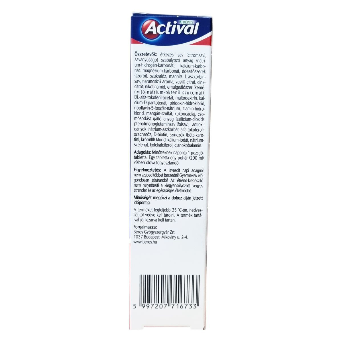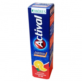 Az Actival multivitamin pezsgőtabletta narancsízű, cukormentes készítmény, amely komplex összetételének köszönhetően különféle vitaminokat, ásványi anyagokat és nyomelemeket tartalmaz. Támogathatja az immunrendszer működését, hozzájárulhat a normál szellemi működés fenntartásához és a megfelelő mentális teljesítményhez, továbbá segítheti a fáradtság csökkentését és az energia-anyagcsere folyamatait. Összetevői között szerepelnek többek között B-vitaminok, C- és D3-vitamin, vas, cink, magnézium, jód és szelén. Az aktív hatóanyagokat egy pohár vízben oldva ajánlott fogyasztani. A termék természetes aromát tartalmaz, és egy doboz 20 pezsgőtablettát foglal magában.