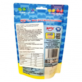 Amos 4D Blocks: vegyes gyümölcsízű (alma, áfonya, citrom, eper) építhető gumicukorka. A csomagolás szórakoztató dizájnnal, „fun play with real fruit juice” szlogennel hirdeti a játékos fogyasztási élményt. Nem tartalmaz mesterséges aromákat és színezékeket. Származási ország: Kína.