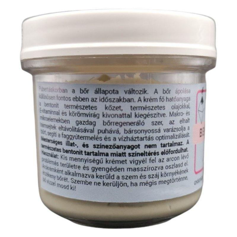 Pubertáskorban a bőr állapota változik. A bőr ápolása különösen fontos ebben az időszakban. A krém fő hatóanyaga a bentonit természetes kőzet, természetes olajokkal, E-vitaminnal és körömvirág kivonattal kiegészítve.