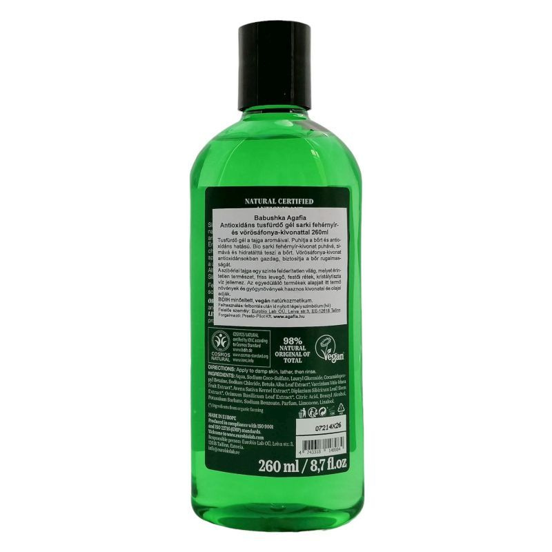 Vörösáfonya-kivonat antioxidánsokban gazdag, biztosítja a bőr rugalmasságát. A szibériai tajga egy szinte felderítetlen világ, melyet érintetlen természet, friss levegő, festői rétek, kristálytiszta víz jellemez. Az egyedülálló termékek alapjait itt termő növények és gyógynövények hasznos kivonatai és olajai adják.