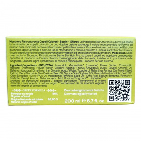 Ez a hajpakolás kifejezetten festett, száraz és sérült hajra lett kifejlesztve, hogy megóvja a szín intenzitását és természetes fényét, miközben mélyen helyreállítja a haj szerkezetét.