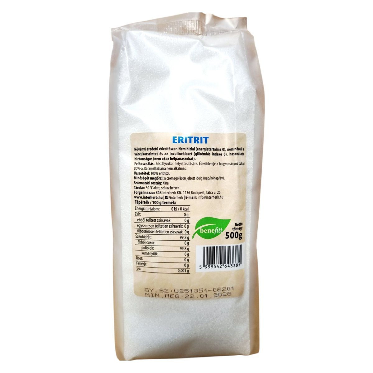 Az ERITRIT egy növényi eredetű, természetes édesítőszer, amelyet cukorbetegek is fogyaszthatnak. Energiatartalma 0, így nem hizlal, és glikémiás indexe is 0, ami azt jelenti, hogy nem növeli a vércukorszintet és az inzulinválaszt. Az eritritol 100%-ban természetes összetevő, amely biztonságosan használható, mivel nem okoz bélpanaszokat. A termék ideális választás lehet diétás étrendhez, és reform élelmiszerként is megállja a helyét. Az eritritol kristálycukor helyettesítésére szolgál, de karamellizálásra nem alkalmas. A termék Kínából származik, és a BGB Interherb Kft. forgalmazza Magyarországon.