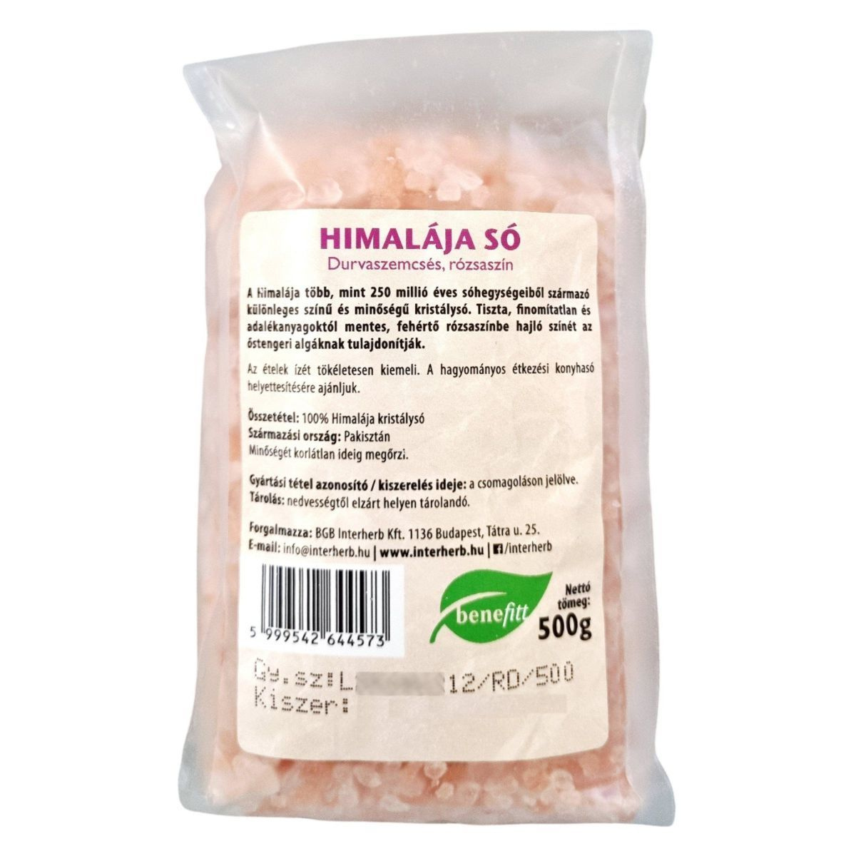 A termék a Himalája sóhegységeiből származik, és különleges rózsaszín színét az őstengeri algáknak köszönheti. Ez a durvaszemcsés, rózsaszín Himalája só tiszta, finomítatlan, és adalékanyagoktól mentes. Az ételek ízét tökéletesen kiemeli, és a hagyományos étkezési konyhasó helyettesítésére ajánlott. A termék minőségét korlátlan ideig megőrzi, és Pakisztánból származik. A forgalmazó a BGB Interherb Kft., amelynek székhelye Budapest, Tátra u. 25. A termék 500g-os kiszerelésben kapható.