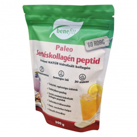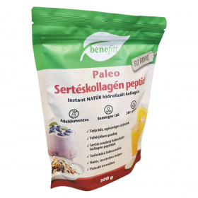 A benefitt Paleo Sertéskollagén peptid egy adalékmentes, natúr, ízesítetlen italpor, amely sertés eredetű hidrolizált kollagén peptideket tartalmaz. Fehérjében gazdag termék, amely hideg és meleg italokban egyaránt jól oldódik, és természetes módon glutén- valamint laktózmentes. Széles körben használható, akár teában, vízben, gyümölcslében vagy joghurtban is fogyasztható, és alkalmas paleolit étrendhez. Az előállító üzem nem használ fel búzát, gluténforrást, szóját, tojást, tej- és tejszármazékokat, ezáltal segíthet az allergének elkerülésében. A termék csomagolóanyaga 100%-ban újrahasznosítható, így környezettudatos választás lehet.