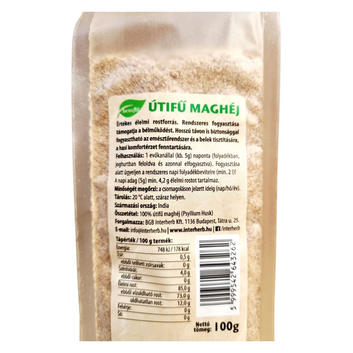 Az útifű maghéj egy természetes rostforrás, amelyet diétás étrendhez javasolnak. A termék 100% természetes összetevőkből áll, és Indiából származik. A napi ajánlott adag 5 g, amely jelentős mennyiségű élelmi rostot tartalmazhat, így hozzájárulhat a bélműködés támogatásához. A termék vegán és paleo étrendbe is beilleszthető. Fontos a megfelelő folyadékbevitel a fogyasztása során.