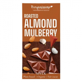 Benjamissimo bio vegán kókuszos csokoládé pörkölt mandulával, fehér eperrel 60g