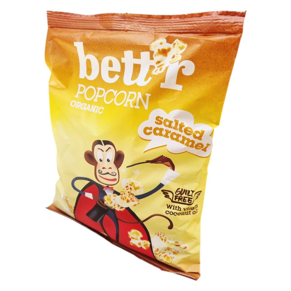 A bett'r sós karamellás popcornja bio és vegán, amely kókuszolajjal készül. Élvezd a sós és édes ízek tökéletes harmóniáját bűntudat nélkül!