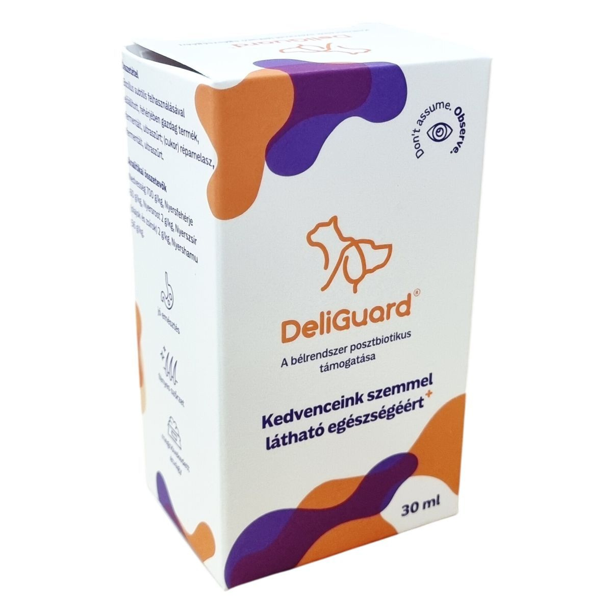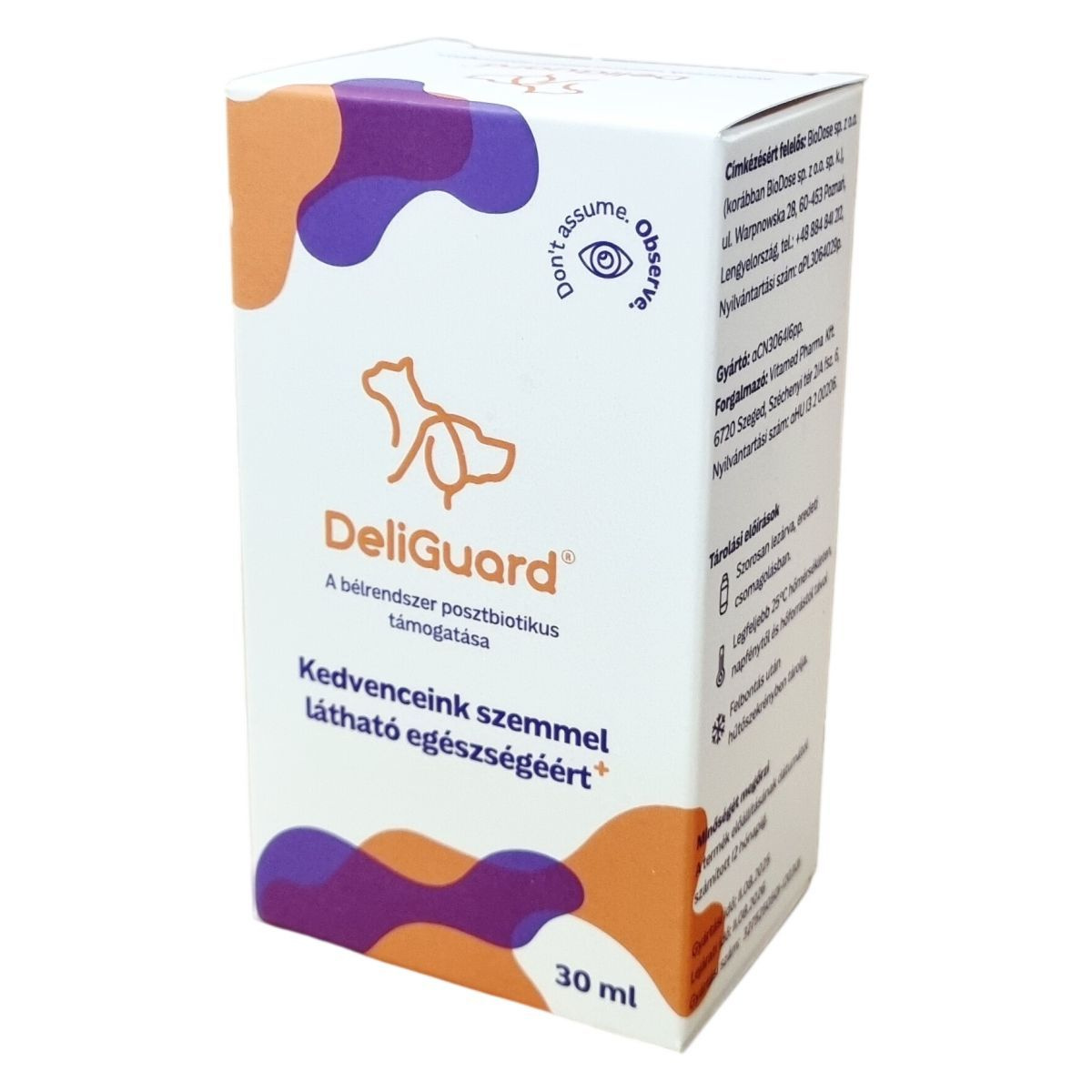 A DeliGuard a bélrendszer posztbiotikus támogatását biztosítja kedvenceink szemmel látható egészségéért. A készítmény alkalmazása hozzájárulhat a jó emésztéshez, a fényes szőrzethez és a megnövekedett étvágyhoz. Életkortól és életmódtól függetlenül adható kutyák és macskák számára. Már az alkalmazás megkezdésekor válassza ki, hogy ivóvízzel vagy eledellel keverve adja be a terméket, és ezt követően ne váltogassa. Egy flakon körülbelül 450 cseppet tartalmaz. Minőségét megőrzi a termék előállításának dátumától számított 12 hónapig. Nyilvántartási szám: αPL3064029p (BioDose), αHU 13 2 00206 (Vitamed Pharma Kft.).