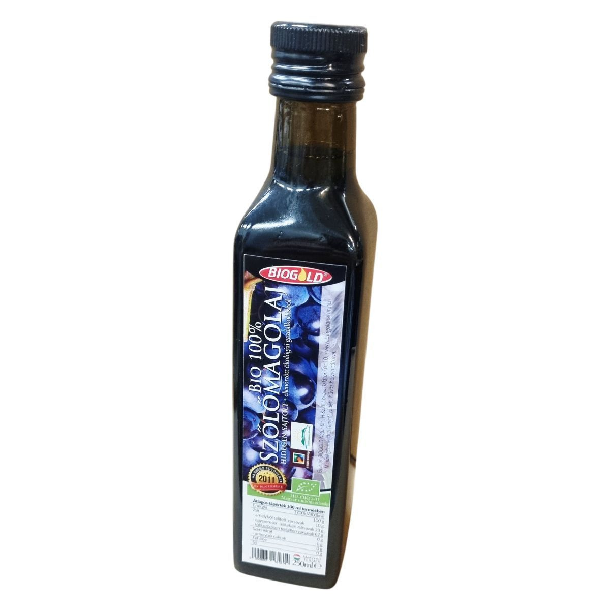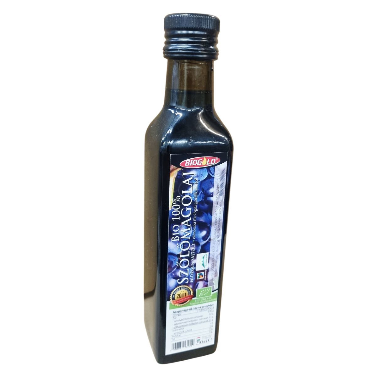 A BIOGOLD Szőlőmagolaj 100%-ban bio, hidegen sajtolt termék, amely ellenőrzött ökológiai gazdálkodásból származik. Magyar termék, amely 2011-ben elnyerte a BIOGOLD sütőolaj év bioterméke címet. Kizárólag szőlőmagolajból készül, mely gazdag többszörösen telítetlen zsírsavakban, miközben energia értéke magas. A termék csomagolása 250 ml-es kiszerelést tartalmaz.