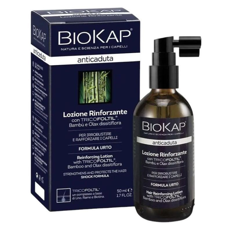 Sokkoló kezelés az erősebb hajért. A BioKap Anticaduta erősítő folyadék egy sokkoló kozmetikai kezelés, amely kifejezetten a haj erősítésére és megvastagítására lett kifejlesztve, ellensúlyozva a túlzott hajhullás és a ritkulás problémáit. Növeli a haj ellenálló képességét, javítja a haj vastagságát és sűrűségét. Férfiak és nők számára egyaránt alkalmas. A praktikus adagolójának köszönhetően könnyen és pontosan alkalmazható: közvetlenül a nedves vagy száraz fejbőrre kell permetezni, váltakozó napokon, és a felszívódás elősegítése érdekében rövid ideig masszírozni.