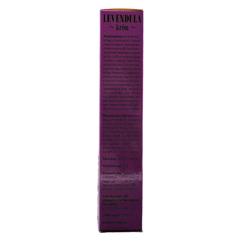 A Biomed Levendula Krém hatóanyaga is Franciaországból származó nagy tisztaságú levendulaolaj, amelyet frissítő masszírozásra ajánlunk.