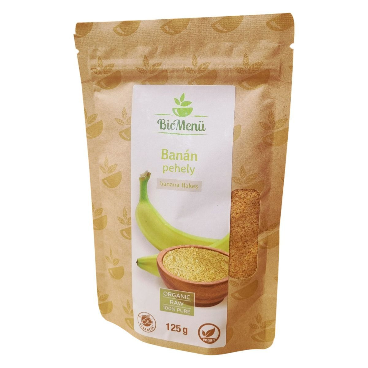 A BioMenü BIO BANÁN pehely egy 100% bio banánból készült termék, amely Ecuadorból származik. A termék vegán, bio és raw minősítésű, és ideális különféle ételek ízesítésére, mint például turmixok, sütemények, gyümölcslevek, fagylaltok és müzlik. A termék táplálkozási tulajdonságai változhatnak a környezeti feltételektől függően, illetve az idő múlásával. A termék forgalmazója a Caleido IT-Outsource Kft., és rendelkezik HU-ÖKO-02 tanúsítvánnyal.
