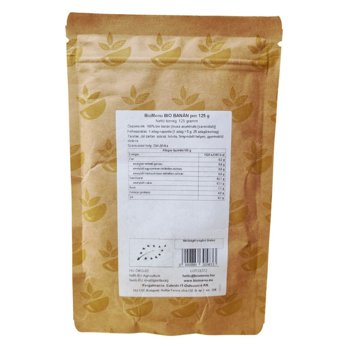 A BioMenü BIO BANÁN por 100% bio banánból készül, amely Dél-Afrikából származik. A termék organikus, nyers és vegán, ideális választás egészségtudatos fogyasztóknak.