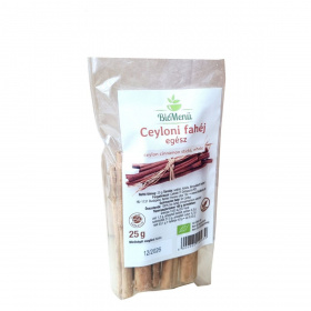 A BioMenü Ceyloni fahéj egész formában kapható, 25 g-os kiszerelésben. A termék 100% bio fahéjat tartalmaz, amely Sri Lankáról származik. Ideális választás azok számára, akik a természetes és vegán étrendet részesítik előnyben.