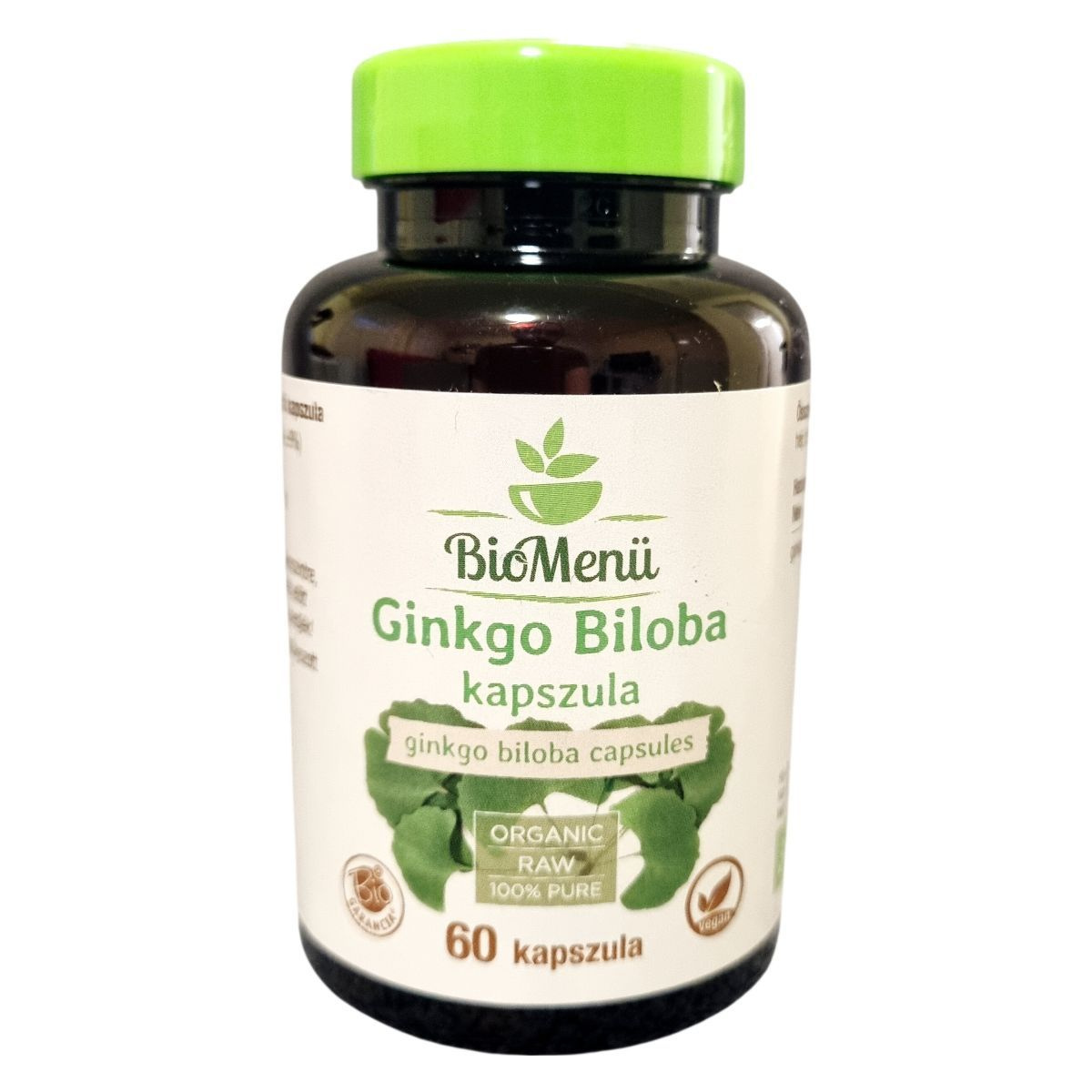 A BioMenü bio ginkgo biloba kapszula nettó tömege 33,6 g, amely 60 darab, egyenként 560 mg tömegű kapszulát tartalmaz. A készítmény földrajzi eredete Kína, és Non-EU Agriculture minősítésű, az ellenőrzést a HU-ÖKO-02 szervezet végzi. A kapszula héja hidroxipropil-metil-cellulózból készül, így megfelel a vegán étrend követelményeinek. Fontos, hogy az ajánlott napi mennyiséget ne lépje túl, és a termék használata előtt bizonyos egészségügyi állapotok esetén érdemes orvossal konzultálni.