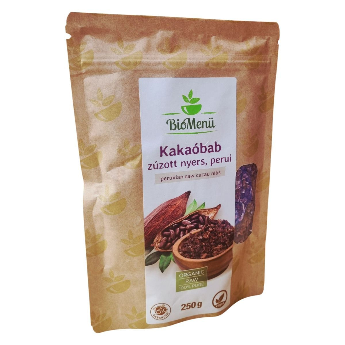 A BioMenü BIO KAKAÓBAB zúzott nyers perui termék 250 grammos kiszerelésben kapható. A termék 100% bio hántolt kakaóbabból készül, amelyet Peruból származtatnak. A termék organikus, nyers és vegán minősítéssel rendelkezik, így ideális választás a természetes és egészséges életmód követőinek. A termék energia- és tápérték adatai alapján gazdag zsírban és rostban, miközben alacsony cukortartalommal bír. A termék tárolása során fontos, hogy száraz, hűvös és fényvédett helyen tartsuk. A termék HU-ÖKO-02 tanúsítvánnyal rendelkezik, és a Caleido IT-Outsource Kft. forgalmazza.
