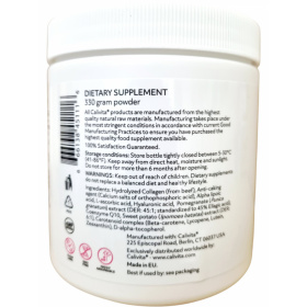 A Calivita GlamUp Pure egy 330 g-os kollagén komplex por, amely megadott napi adagban hidrolizált marhakollagént és többféle antioxidáns, vitamin és növényi kivonat kombinációját tartalmazza. A formula olyan összetevőket foglal magába, mint a hialuronsav, gránátalma-kivonat, koenzim Q10, édesburgonya-kivonat és karotinoid komplex. A címkén hangsúlyozott a termék magas minősége és a gyártási folyamat szigorú ellenőrzése. Az összetevők együttesen hozzájárulhatnak a bőr rugalmasságának, a kötőszövetek és ízületek normál állapotának támogatásához. A praktikus por forma lehetővé teszi, hogy könnyen adagolható és beilleszthető legyen a mindennapi étrendbe.