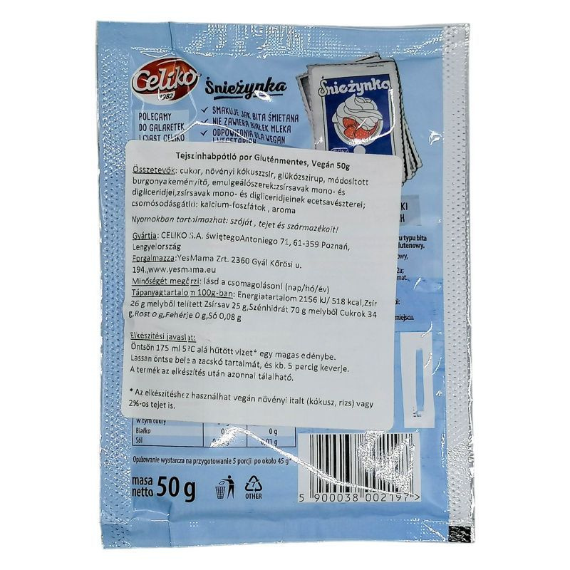 A Celiko gluténmentes tejszínhabpótló por egy kiváló alternatíva a hagyományos tejszínhab helyettesítésére, amely lehetővé teszi, hogy ízletes és könnyű desszerteket készítsünk anélkül, hogy gluténtartalmú összetevőket használnánk. Ez a por koncentrált formában érkezik, így rendkívül praktikus a felhasználása, hiszen gyorsan és egyszerűen elkészíthető. A termék különösen ajánlott azok számára, akik gluténérzékenységgel küzdenek, vagy akik egyszerűen csak szeretnék elkerülni a glutént az étrendjükből. A Celiko tejszínhabpótló por nemcsak gluténmentes, hanem vegetáriánus is, így széles körben alkalmazható különböző diétákban. Az íze és állaga hasonlít a hagyományos tejszínhabhoz, így tökéletesen illeszkedik a különféle desszertekhez, süteményekhez és tortákhoz.
