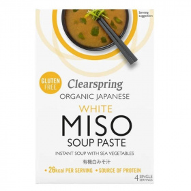Instant miso levespaszta az édes fehér miso lágy ízével és hozzáadott tengeri zöldségekkel.