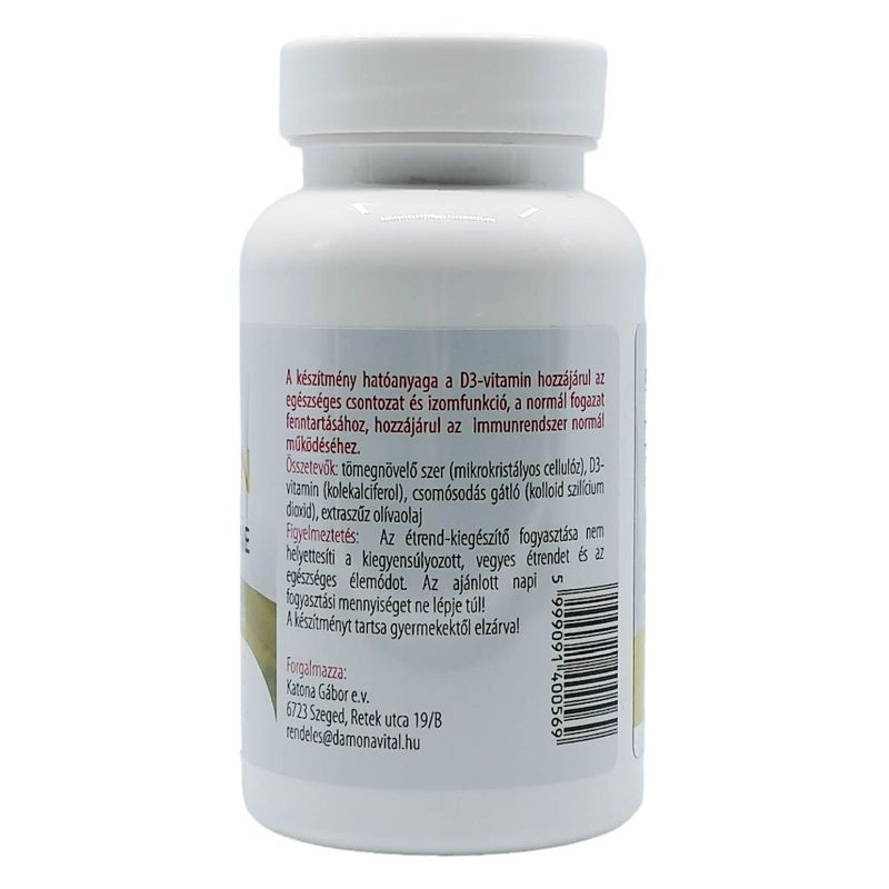 A D3-vitamin (kolekalciferol) egy zsírban oldódó vitamin és prohormon, amely a szervezetben aktív hormonszerű vegyületté alakul. A bőrben UVB-sugárzás hatására képződik, majd a májban és a vesében történő átalakulás után a kalcium- és foszfát-anyagcsere szabályozásában játszik szerepet. Hozzájárulhat a normál csontozat és fogazat fenntartásához, valamint támogathatja az immunrendszer megfelelő működését. Részt vesz a sejtosztódási folyamatok szabályozásában és az izomműködés fenntartásában is. Hiánya csökkent napfény-expozíció vagy elégtelen bevitel esetén alakulhat ki. Megfelelő adagolás mellett biztonságos, ugyanakkor túladagolása hiperkalcémiához vezethet. Egyéni egészségügyi állapot vagy gyógyszerszedés esetén javasolt szakemberrel konzultálni.
