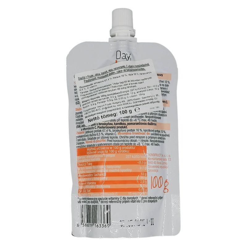 DayUp Fruits gyümölcspüré almával, barackkal, répával és narancspéppel, hozzáadott C-vitaminnal.
