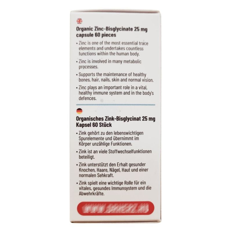 A cink részt vesz a normál szellemi működés, valamint a bőr, a köröm, a haj normál állapotának fenntartásában, támogatja a normál látás, a csontozat fenntartását, szerepet játszik a sejtosztódásban.